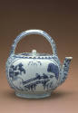 Label TextChinese landscape painting inspired the scene on this Japanese ewer. It evokes an ideal natural environment rather than representing a real scene. This ewer was likely used as a freshwater jar (mizusashi) in the Japanese tea ceremony.