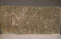 Stelae like this were generally placed in underground tombs above a "false door," a carving near the top of the tomb shaft, where the spirit of the deceased could access the tomb.