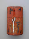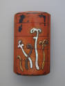 Label TextIn early modern Japan, men suspended small containers (inrō) for carrying personal items (such as herbs and seals) over the sashes of their robes using a toggle (netsuke) connected by silk cords held by a fastener (ojime). All these items were made of a diversity of materials, were often elaborately carved and decorated, and offered the wearer an opportunity for self-expression. Inrō were commonly commissioned and might feature designs made or inspired by leading artists of the day.