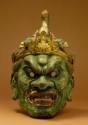 Label TextThis mask of Dragon King, one of the eight guardians, was used in Buddhist rituals. Green skin and bulging eyes are his distinctive features, which, together with the open mouth and sharp teeth, produce a fearsome look.
