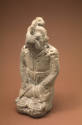 Label TextThis rare early sculpture depicts Garuda, a divine bird-like deity who is perhaps best known as the vehicle of the Hindu god Vishnu, kneeling with his hands held tightly in his lap. This work is believed to relate to a large group of clay sculptures created in the early 700s as part of the five-story pagoda at Hōryūji, a Buddhist temple in Nara, which was the capital of Japan at the time. The first story of Hōryūji’s pagoda features four tableaux portraying scenes from the life of the Historical Buddha, Shakyamuni, including his final death, or parinirvana. This sculpture may show Garuda solemnly mourning the death of Shakyamuni or, alternatively, listening intently to his preaching.
