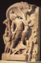 Label TextSiva, as the slayer of demons, is shown here in a victory pose as he holds the flayed skin of the elephant demon above his head. Powerful diagonals and the deep undercutting of the stone panel emphasize the strength of the god in overcoming his enemies.