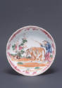 Label TextThe motif of an Oriental-looking farmer herding an elephant may echo Europe's interest in India, raising the possibility the saucer was made for the Anglo-Colonial market.