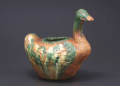 Label TextThe three-color or "sancai” glaze of this piece was popular in the mid-to-late Tang and is a defining feature on ceramics of the period. These wares were made for the deceased to accompany them to the afterworld.