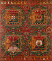 Label TextA mandala (Sanskrit for “circle”) is a diagrammatic image of the palace—the universe—of a deity. A Buddhist practitioner uses it as a mental map to proceed, step by step, toward the deity at its center. This thangka (Tibetan hanging scroll) comes from a set of fourteen; each displays four mandalas. These scrolls helped followers of the Sakya order, one of the four main orders of Tibetan Buddhism, visualize the Vajravali, a specific collection of texts. As Sakya monks followed the Vajravali teachings, they would unroll and meditate on one painting after the next in a prescribed order.