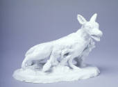 Label TextThis figure came into Seattle's collection titled Crouching Fox, thus putting a good face on the fact that this early experimental work slumped in firing. Even so, the fox is so rare that only one other is known. Part of its appeal, especially to Bow aficionados, is the evidence of struggle in the early days of the factory.