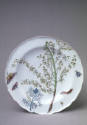 Label TextThe botanical painting on this plate is copied from an engraving in Philip Miller’s Figures of the Most Beautiful, Useful, and Uncommon Plants, published between 1755 and 1760. Illustrations from volume one of this important work were used as source material for botanicals on Chelsea porcelain. Miller included Dwarf Southernwood in his book not for its beauty but for its efficacy as a medicine. In its dictionary listing, he recorded: “Southernwood is bitter and aromatic, with a very strong smell. It is not much in use, but promises considerable effects, outwardly in discussing contusions and tumours, inwardly for destroying worms, and in disorders peculiar to the female sex. . . . The branches dye wool a deep yellow."