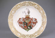 Label TextThis plate bears the coat of arms of the Benada family, Bohemian-Silesian merchants who were elevated to the nobility in 1706. The aristocrat Carl von Wolfsburg painted it. Also known for his miniature portraits, von Wolfsburg turned his hand to porcelain painting as a refined pastime. Works decorated by him are very rare.
