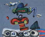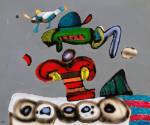 Label TextWhile a professor at the University of Washington (1949-81), Mason taught a young budding artist, Chuck Close, and formed a friendship that continues today. Mason recalls that Close, a 1962 graduate, was invited back in the late 1960s as a visiting artist. While there, Close offered Mason the use of his airbrush, a device originally designed to retouch photographs, but nevertheless a suitable tool for painters to experiment with in their work. In Fly Your Own Things, Mason used pencil, oil crayons and the airbrush to articulate the playful and wildly fantastical forms.