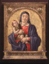 Label TextBecause the Virgin and Child are seen from below, it is likely that this panel occupied the upper register of a large altarpiece containing numerous panels. The work is typical of Vivarini's mature style, which combines brilliant color and sculptural volume to create an image that would be legible from a distance in a dimly lit church. The angular folds and the crisply hatched brushstrokes are reminiscent of the techniques of Vivarini's contemporaries Mantegna and Squarcione.