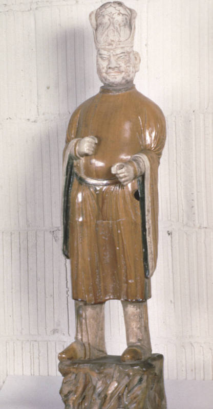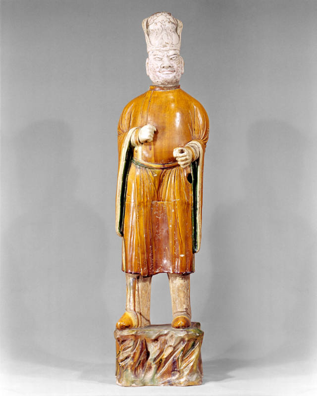 Label TextAside from serving as military guards, foreigners were employed during the Tang dynasty as trusted civil servants and entertainers-even sometimes as eunuchs-in the court, as represented by this sculpture. Naturally they were retained for service in the afterlife as well, a private component to the entourage of an aristocratic official.