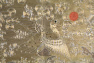 Label TextThe wild goose, symbol of a fourth rank official, is couched with gold threads and outlined with white gold threads—although silver in appearance, these threads are actually white gold, an alloy of gold and at least one white metal, usually nickel, manganese or palladium. Otherwise, if silver, they would appear black from tarnish.
