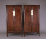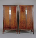 Label TextThis so-called “round-corner cabinet” is characterized by the curved shape of its upper corners. Measuring six feet in height—almost twice the size of more typical cabinets—this example features the beautiful grain of the single-planked doors made of the famed huanghuali wood. As the cabinet-makers were adept at highlighting the best features of the wood, they devised an ingenious joinery system that connected various parts seamlessly without the use of nails. Molding on the edges is unique, and dates the cabinet at circa 1580. Inside the cabinet is a coating of mud with lacquer that acts as a stabilizing factor, preventing the wood from warping. These cabinets would have served as storage, holding books, scrolls and other scholar's accoutrements.