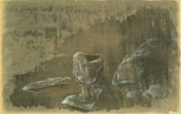 Label TextThe chalice, the vessel by which the divine spirit is symbolically transferred from one to another, became Graves’ symbol of his spiritual journey and transformation. In his paintings, the landscape of the journey is often rough and bleak.
