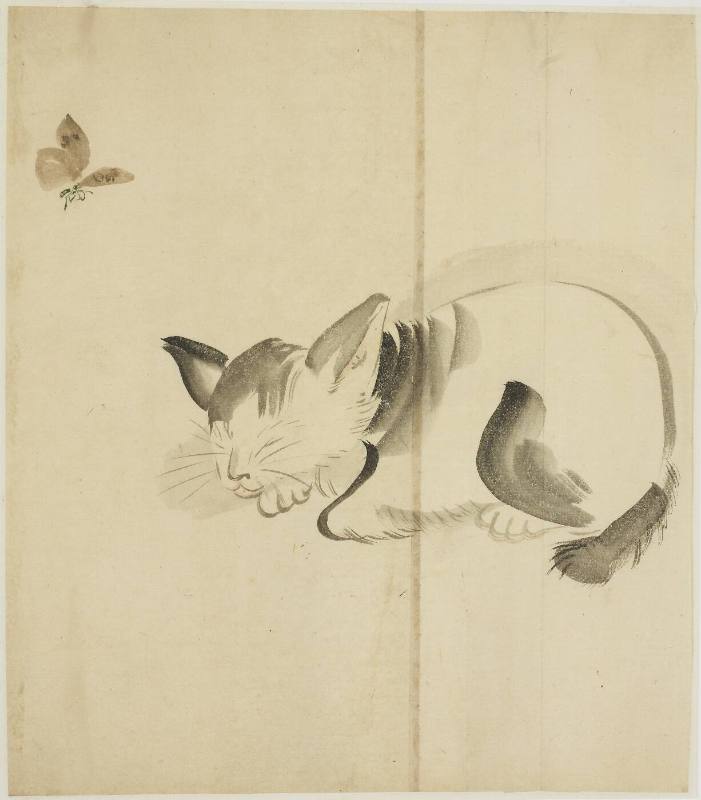 Butterfly and Sleeping Cat