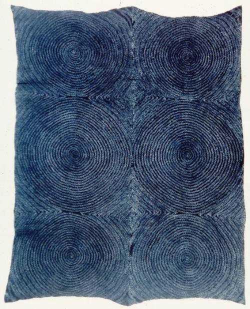 MediumCotton, factory woven plain weave, tied resist (adire oniko) with indigo dye