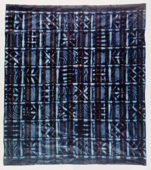 MediumCotton; factory woven brocade weave; paste resist (adire eleko); commercial red and natural indigo dye