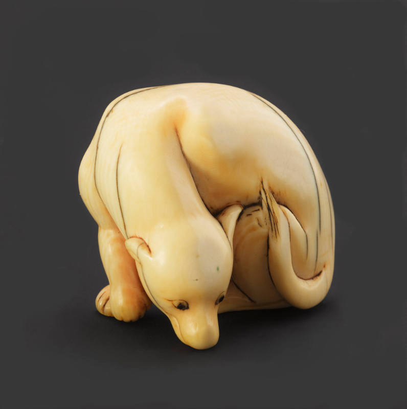 Netsuke modeled as a reclining dog