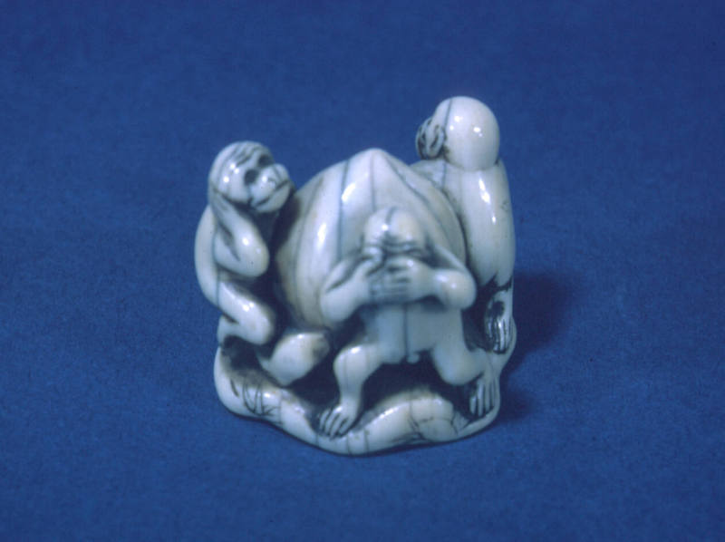 Netsuke modelled as "sambiki no saru"