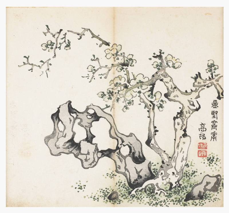 Rocks beside flowering cherry tree