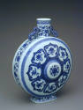 Label TextInspired by the mottled effect of the cobalt in early Ming blue and white, this pair of flasks demonstrates the Qing potter’s control of pigment. This type of moon flask, with two loop handles, was sometimes regarded as a pilgrim flask, but served a more decorative purpose during the Qing period.