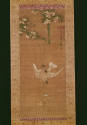 Label TextThe Xuande emperor was an accomplished painter of animals whose refined brushwork and colors reflect the polished manner of the Painting Academy. This inscription notes that he emulated the style of Song-dynasty artist-emperor, Huizong (1082–1135) and that he bequeathed the work to his Grand Secretary Yang Shiqi. Although these attributions are unlikely, the image engages us with its mysterious subject: a white hawk has spotted a moth that remains alighted on a flower even though it is falling and losing petals. Straining against the bronze perch and chain—artfully disguised within a flower bough—this beloved pet is thwarted in its instinct to give chase.