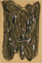 Label Text"Chinese artists paint the flight instead of the birds only." (Painter Teng Baiye, Mark Tobey’s teacher, Seattle, 1924) Woodpeckers was one of the first paintings Graves did under the influence of Mark Tobey’s white writing. Graves’ brushwork became gestural, calligraphic. White does not simply describe the colors of the woodpecker; light and animated, the white strokes enliven the scene—they are more visual energy here than they are the physical material of the birds’ plumage. This is not simply a painting of birds. It is a spirited display of woodpeckers at work.