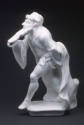 Label TextThis figure represents a character from Commedia dell'arte, the farcical Italian theatre. The old man Pantaloon is the father of the female lover, Isabella. All the characters, with the exception of the lovers, wore stylized masks, usually of leather or papier-mâché. The masks concealed the actors' facial expressions from the audience, so gestures and mime were greatly exaggerated. Even though the porcelain figures were often created without masks, this figure of Pantaloon illustrates the importance of the grand gesture.