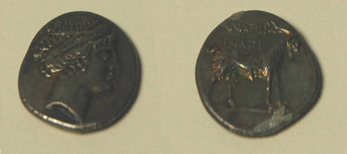 Rhodian didrachm with head of Artemis (obv.) and goat (rev.)