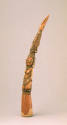 Label TextYoruba belief specifies that each person kneels to choose a destiny before birth. If this request is made humbly and deemed reasonable, one's character and success can be established for life. Yet, this destiny may be muted by the world's chaos and disorder. When confused by misfortune or despair, one kneels again in the presence of a babalawo (diviner-priest). He uses a tapper to call upon Orunmila, the orisa who knows what the possibilities are in one's life.