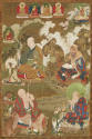 Label TextLuohans, “worthy ones” or “perfected saints,” are enlightened beings who will be released from the circle of rebirth at death. The Sixteen Luohans (or Eighteen Luohans) were a commonly found motif in Buddhist texts and images. As followers of Buddha, they remained in the world to carry on his teachings. Here, in each of the paintings, four Luohans are depicted in a natural setting, and are shown with objects that help to identify them. It is likely that these two paintings were part of a larger set.