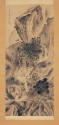 Label TextThough widely known as a follower of Yosa Buson, Kinkoku did not study directly with the literati master. Rather, he absorbed Buson's brush techniques as well as his landscape and figure style by repeatedly copying the master's works. After an arduous pilgrimage in the mountains of Japan with a group of Shugendo mountain-worship practitioners, Kinkoku's work reflected a new sense of raw energy and spirituality, his direct experience of nature transmitted through the medium of his brush. In these three scrolls, we sense the artist's imagination in the surging peaks and the pulsing leaves. Perhaps we can view the figure crossing the bridge as Kinkoku himself, situated at the halfway point between