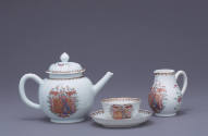 Label TextThese pieces are part of a tea set made as a wedding gift for Lady Charlotte Beauclerk. Charlotte's father, the Duke of Saint Albans, was an illegitimate son of King Charles II. His arms, on the right of the shield, are identical to the king's, with the addition of a diagonal bar indicating royal but illegitimate birth.