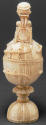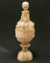 Label TextSwirling crocodiles adorn this early example of tourist art. Portuguese explorers saw talented carvers at work during their initial voyages down the coast of West Africa. They commissioned ivory carvings to take back to their patrons, usually Renaissance kings and nobility. The cellars were prominently displayed on dining tables to dispense salt, a treasured commodity at that time. While serving as a dining implement, the salts also were likely to spark conversations about the newly discovered lands and cultures of Africa.