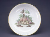 Label TextThe lush still-life subjects of fruit on these wares pay homage to the rich agricultural valleys near Naples, where the Capodimonte factory was founded. Princess Maria Amalia, the granddaughter of Augustus the Strong, the great patron of the Meissen factory, arrived for her wedding to Charles, King of Naples, with a dowry that included no fewer than seventeen Meissen porcelain table services. The founding of a porcelain factory became a goal of the royal couple in addition to their patronage of other aspects of the decorative arts. Their factory was founded on the grounds of the royal palace at Capodimonte in 1743. Charles also founded an academy of design and a tapestry factory. Porcelain, after hunting, became his passion.