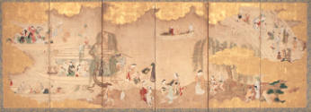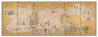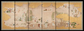 MediumPair of six-panel screens; ink, color and gold on paper
