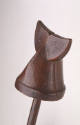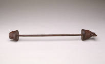 Label TextWooden spools hold nettle fiber cordage that was used to wrap the leader section of a whale harpoon line, that part attached to the harpoon point. Whaling equipment has to function precisely to perform this dangerous job successfully, but the making and use of such apparatus was shrouded in reverence and secrecy. Images received in the dreams and visions of the whaler were transferred to his tools: here, the ends are carved with gray whale faces.