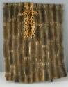 Label TextSkins of small hydraxes are sewn in stripes to create the main body of this cloak. Spots interupt this sequence at the top where a civet cat's arms stretch out, as if to announce the presence of a chieftain. A very rare intact example of a 19th-century cloak, it was transported from Johannesberg to Idaho by an Irish miner named Paul Corcoran in 1892.