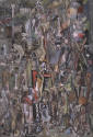Label TextRegionalism merges with abstraction in Tobey’s view of Pike Place Market. Its subject—the market’s sprawling Rummage Hall and the trade in used goods that occurred there regularly during World War II—anchors the painting in a specific place and time, while its style—fragmented Cubist forms energized by the artist’s ubiquitous white line—conjures the anxious frenzy of the crowded scene.