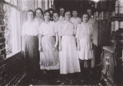 Label TextAfter teaching at the School of Ethical Culture in New York, Lewis Hine turned to photography as a means for promoting social reform. He set out to document gross violations of laws protecting young children in canneries, factories, agriculture, and mining operations, but the work became dangerous as irate foremen and factory police began to take notice. He invented guises to obtain entry: posing as a fire inspector, post card vendor, Bible salesman, and impoverished schoolteacher. In his photographs, children often look out of their surroundings with tough expressions; not succumbing to the idea of being helpless but already conscious of what Hine called "the vicious circle of poverty that awaits them." Here, the title indicates his approval of a cotton mill where "good conditions prevail." His photographs became the single most important influence in this country's passage of child labor legislation. Unfortunately, Lewis Hine died in 1940, a year before the Supreme Court declared the Federal Wage and Hour Law constitutional.