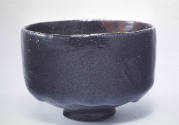 Label TextCreated by Donyu, the third-generation master potter of the Raku family, these two ceramic works were molded by hand without using a potter’s wheel and covered in an opaque red or black glaze without any decorative designs. Such simple and yet elegant tea utensils were prized by tea masters such as the famous Sen no Rikyu (1522–1591), who praised unpretentious beauty as superior to decorative opulence.