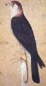 Label TextThis falcon is naturalistically rendered with its head in profile and its body positioned so that individual feathers are discernible. The bird grips a perch that was not completed by the artist—only a faint outline remains. The plain background allows for a more careful study of the falcon’s distinctive features. As exemplified by this painting, the close observation of flora and fauna was a popular genre of painting that flourished under the court of Mughal ruler Jahangir (1605–27) and in the neighboring court of the Punjab Hills (Pahari).