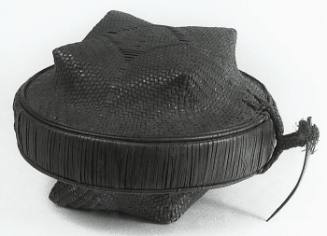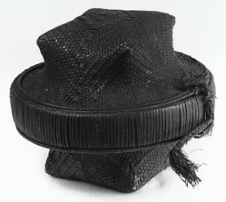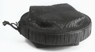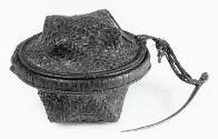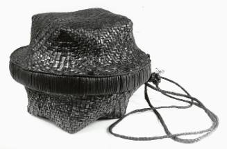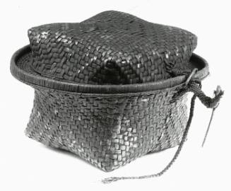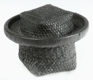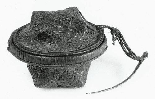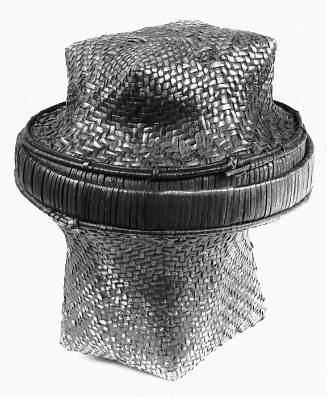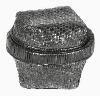Round Basket with Square Base and Lid with Wooden Suspension Hook