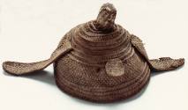Label TextHats are proclamations of rank and title in the Kuba kingdom. Rivalries within the kingdom led to a competitive passion for art that conveyed status. Dyaash, the Kuba concept of ideal character, matches personal initiative with respect for hierarchy. Titleholders-such as the man who picks up obstacles in the king's path, the keeper of records, the herald and the magistrate-all wore hats to emphasize their roles in the royal court.