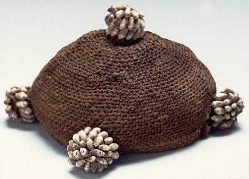 Label TextHats are proclamations of rank and title in the Kuba kingdom. Rivalries within the kingdom led to a competitive passion for art that conveyed status. Dyaash, the Kuba concept of ideal character, matches personal initiative with respect for hierarchy. Titleholders-such as the man who picks up obstacles in the king's path, the keeper of records, the herald and the magistrate-all wore hats to emphasize their roles in the royal court.