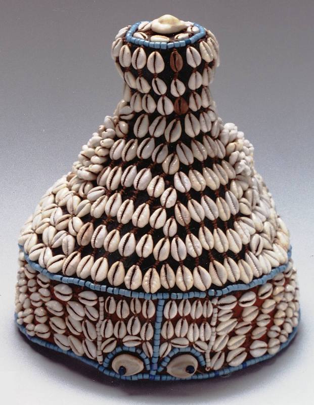 Raffia, cowrie shells, and beads