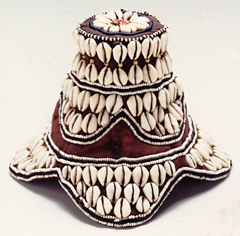 Raffia, cowrie shells, and beads