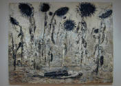 Label TextKiefer, a German artist who lives in France, has made a series of paintings in which a man lies on his back in the yoga posture shavasana, or corpse position. These works have strong continuities with the themes of his earlier art: humanity's bittersweet relationships with nature, the cycle of life and death, and our longing for metamorphosis to a more spiritual condition.
