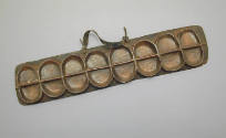 Label TextMaasai Elders Only Elders of the Merrueshi community of the Kaputiei section of the Maasai assembled this sequence to represent the objects most significant to their lives. Central to their daily experience is the mancala gameboard, which is surrounded by all the elements that are traded as the elders sit under a tree and play. Counters are collected over many years, and consist of rocks, aluminum balls, and worn glass. An authority staff is offered only to those who earn respect and are presented with it on behalf of the community. All this art came as a special exchange with the Merruschi community.