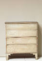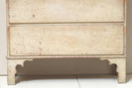 Label TextScholars and connoisseurs of early American rural-style furniture consider this chest to be in exceptional condition; it has not been refinished since the mid-nineteenth century when gray paint was applied over the original red paint. The two bottom drawers of this popular form of chest are functional, but never had drawer pulls attached. The upper drawers are false fronts, to conceal a large compartment which opens from the top-a likely reason these are sometimes called blanket chests.